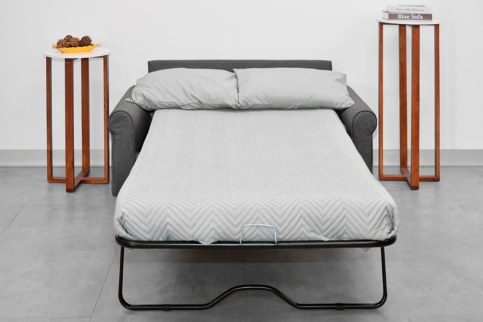 | Acabados | Costuras a tono, patas de madera y sistema de conversión desplegable con herrajes de hierro |